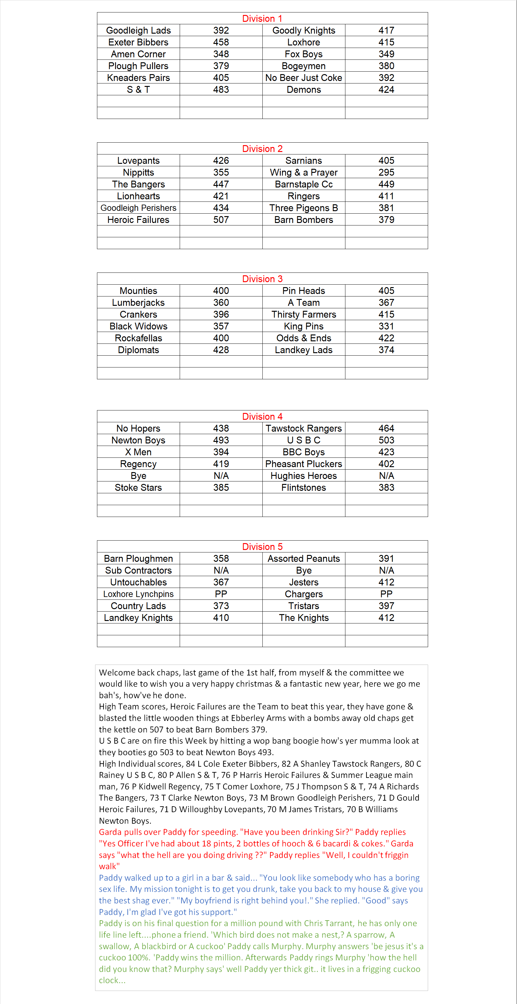 BARNSTAPLE AND DISTRICT MENS SKITTLES LEAGUE